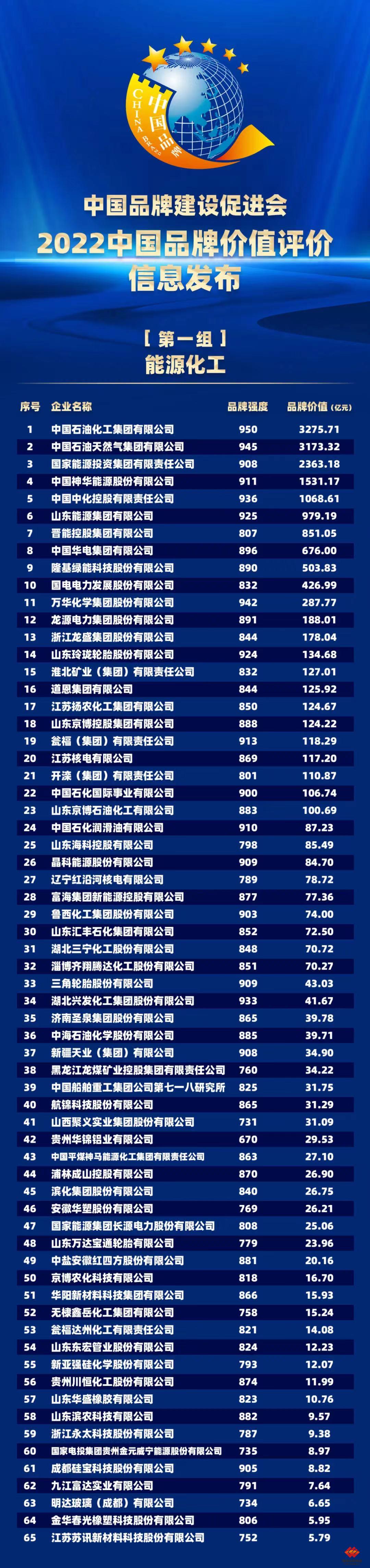 9月5日,中国品牌建设促进会、中国资产评估协会、新华社民族品牌工程办公室等单位在京联合发布“2022中国品牌价值评价信息”榜单。中国神华首次参评,以1531.17亿元的品牌价值位列能源化工领域第四名,能源类上市公司第一名。